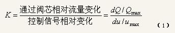 K1表示閥行程與到閥控制信號(hào)之間的關(guān)系,K2表示通過調(diào)節(jié)閥的物料流量與閥行程之間的關(guān)系,即調(diào)節(jié)閥的結(jié)構(gòu)特性(又稱固有流量特性),一旦閥已選定它就不能再改變了。調(diào)節(jié)閥的結(jié)構(gòu)特性,即